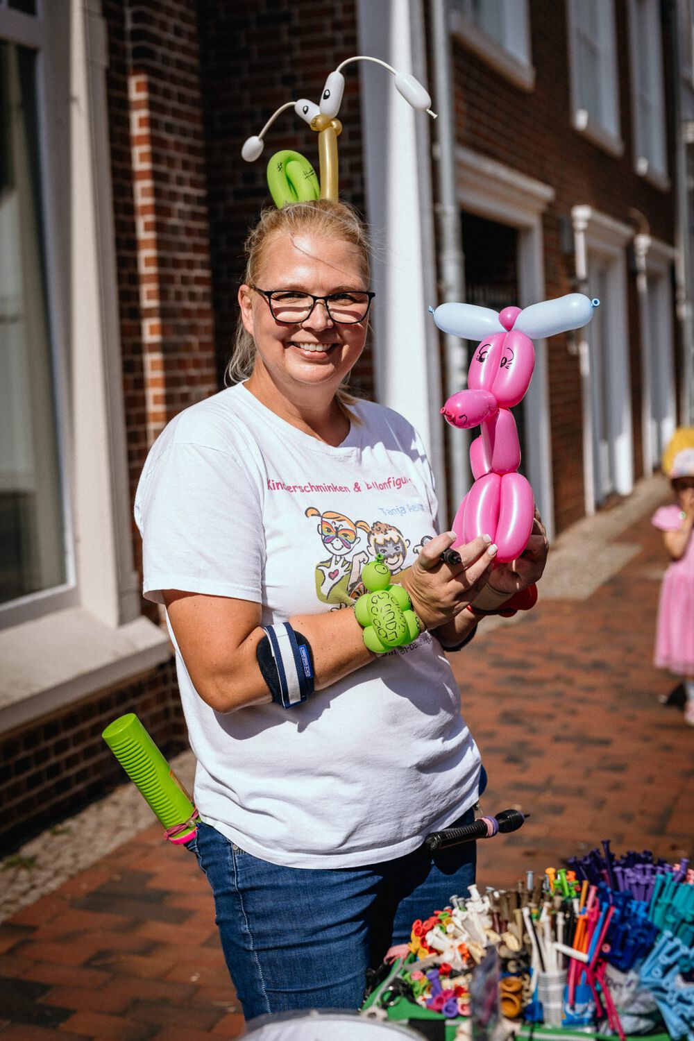 Tanja Aeilts ist eine talentierte Ballonkünstlerin, deren kreative Werke und fesselnde Darbietungen das Publikum begeistern. Mit einer meisterhaften Beherrschung der Ballonmodellierung kreiert sie beeindruckende Skulpturen und Figuren, die sowohl Kinder als auch Erwachsene in Staunen versetzen. Tanja kombiniert technisches Können mit künstlerischem Flair, um einzigartige Ballonkunstwerke zu schaffen. Ob Tiere, Fantasiefiguren oder komplexe geometrische Formen – ihre Kunstwerke sind stets detailreich und lebendig.
