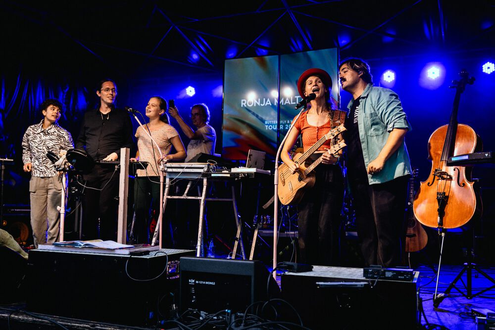 Tänzerisch wechselt sie vom Cello zur Ukulele, zum Klavier und Synthesizer, ihre Stimme zeichnet Fäden von Poesie in die Luft. Erzählt Geschichten vom Unterwegssein, von Lebensfreude und tiefer Verbundenheit. Vor sieben Jahren hat Ronja ihren argentinischen Partner und Bassisten Fede in Italien kennengelernt, seitdem haben die beiden viele hundert Konzerte gespielt mit verschiedensten Formationen ihrer Musikfamilie (“BlueBird Orchestra” genannt), zahlreiche Länder bereist und ihre Songs in verschiedene Sprachen übertragen.