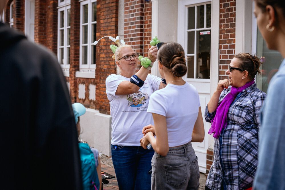 Tanja Aeilts ist eine talentierte Ballonkünstlerin, deren kreative Werke und fesselnde Darbietungen das Publikum begeistern. Mit einer meisterhaften Beherrschung der Ballonmodellierung kreiert sie beeindruckende Skulpturen und Figuren, die sowohl Kinder als auch Erwachsene in Staunen versetzen. Tanja kombiniert technisches Können mit künstlerischem Flair, um einzigartige Ballonkunstwerke zu schaffen. Ob Tiere, Fantasiefiguren oder komplexe geometrische Formen – ihre Kunstwerke sind stets detailreich und lebendig.